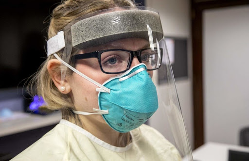 Face shields help protect frontline-workers from potential virus-containing droplets released by coughing, sneezing and other close contact.